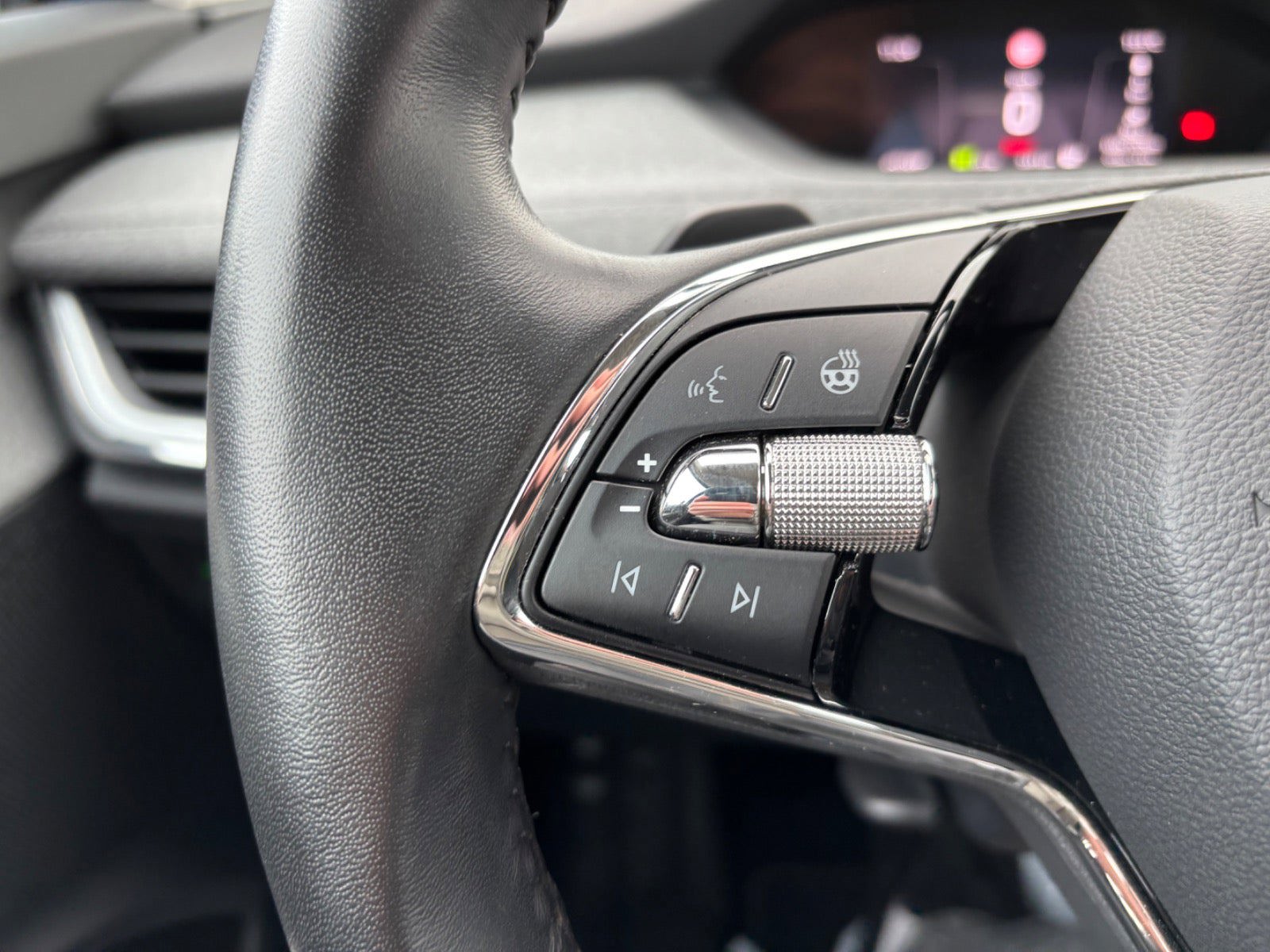 kørecomputer, digitalt cockpit, bagagerumsdækken, multifunktionsrat, læderrat, stofindtræk, højdejust. forsæder, splitbagsæde, ambiente belysning, el-klapbare sidespejle m/varme, tågelygter, led kørelys, fuld led forlygter, led baglygter, dynamisk blinklys i bag, automatgear, varme i rat, 3 zone klima, fjernb. centrallås, nøglefri tænding, fartpilot, udv. temp. måler, sædevarme, 4x el-ruder, trådløs mobilopladning, dab radio, navigation, håndfrit til mobil, musikstreaming via bluetooth, android auto, apple carplay, usb-c tilslutning, bakkamera, parkeringssensor (for), parkeringssensor (bag), skiltegenkendelse, isofix, automatisk lys, airbag, antispin, esp, vognbaneassistent, stemmebetjening, auto hold, automatisk nødassistent, matrix led forlygter, varmepumpe, 19" alufælge